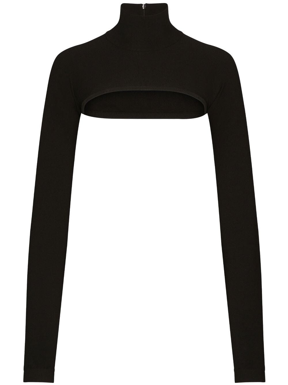 KIM DOLCE&GABBANA cropped high-neck top from DOLCE & GABBANA featuring black, high neck, cropped, rear zip fastening and long sleeves.