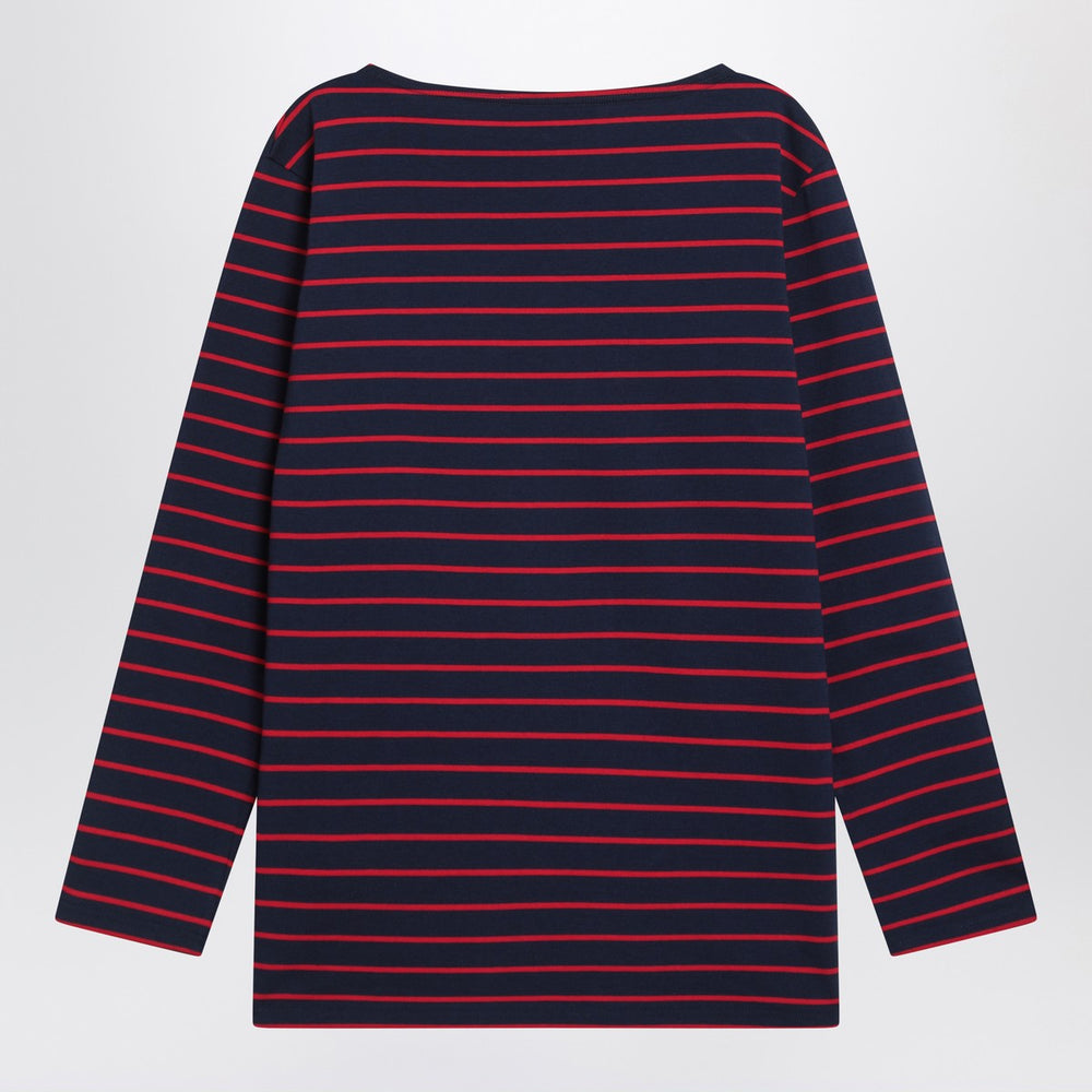 Valentino T-shirt in blue cotton with red stripes, featuring long sleeves, contrasting “Chez Valentino” print on the chest, side slits, and wide crew neck. Size and Fit - Model wears size S Model measurements: Height: 178 cm Chest: 83 cm Waist: 63 cm Hips: 91 cm