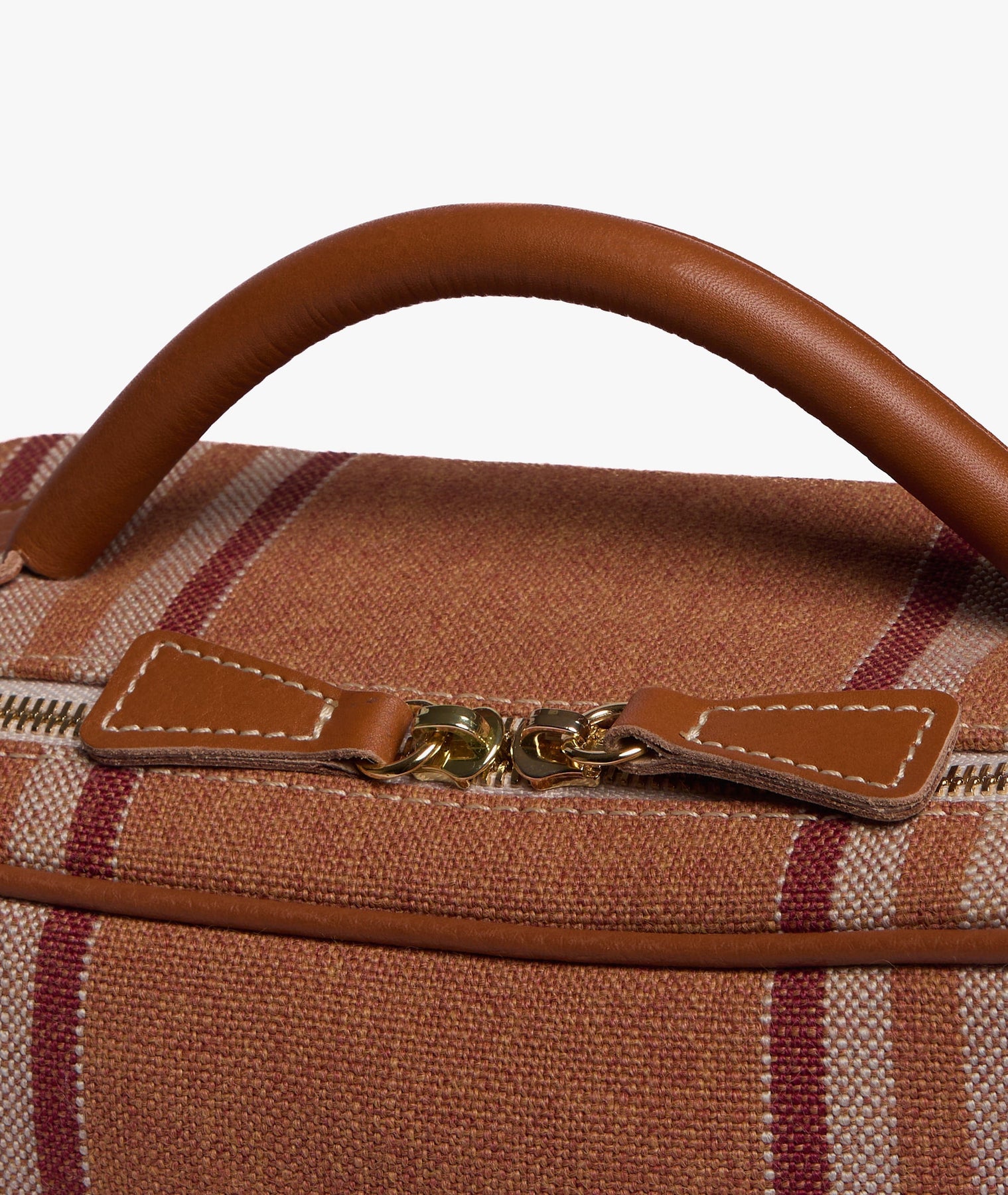 The My Style Bags Berkeley Antibes Beauty Case in Terracotta interprets Mediterranean elegance in a deep, refined shade inspired by coastal greenery and the sunlit landscapes of the Riviera. The striped fabric in green, sand, and ivory creates a natural, sophisticated colour balance, evoking resort-inspired style with timeless appeal. Its structured silhouette maintains shape and stability, protecting the contents with elegance.